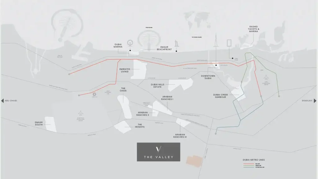 Located in a prime area of The Valley, Avena offers a highly coveted address within Dubai, providing unparalleled access to the rest of the city. Its proximity to Dubai-Al Ain Road ensures seamless connectivity to key destinations across Dubai, while being just minutes away from landmarks such as the Rugby Sevens Stadium, Dubai Outlet Mall, and major business hubs. This prime location offers not only convenience but also the appeal of serene living, with access to central parks and urban amenities.