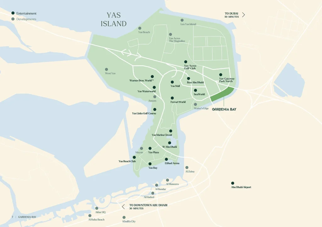 Yas Island is one of Abu Dhabi’s most renowned locations, and it is just 30 minutes away from Downtown Abu Dhabi and 50 minutes away from Dubai.